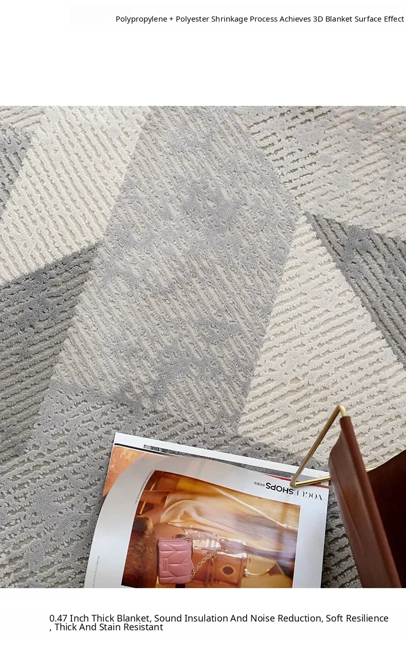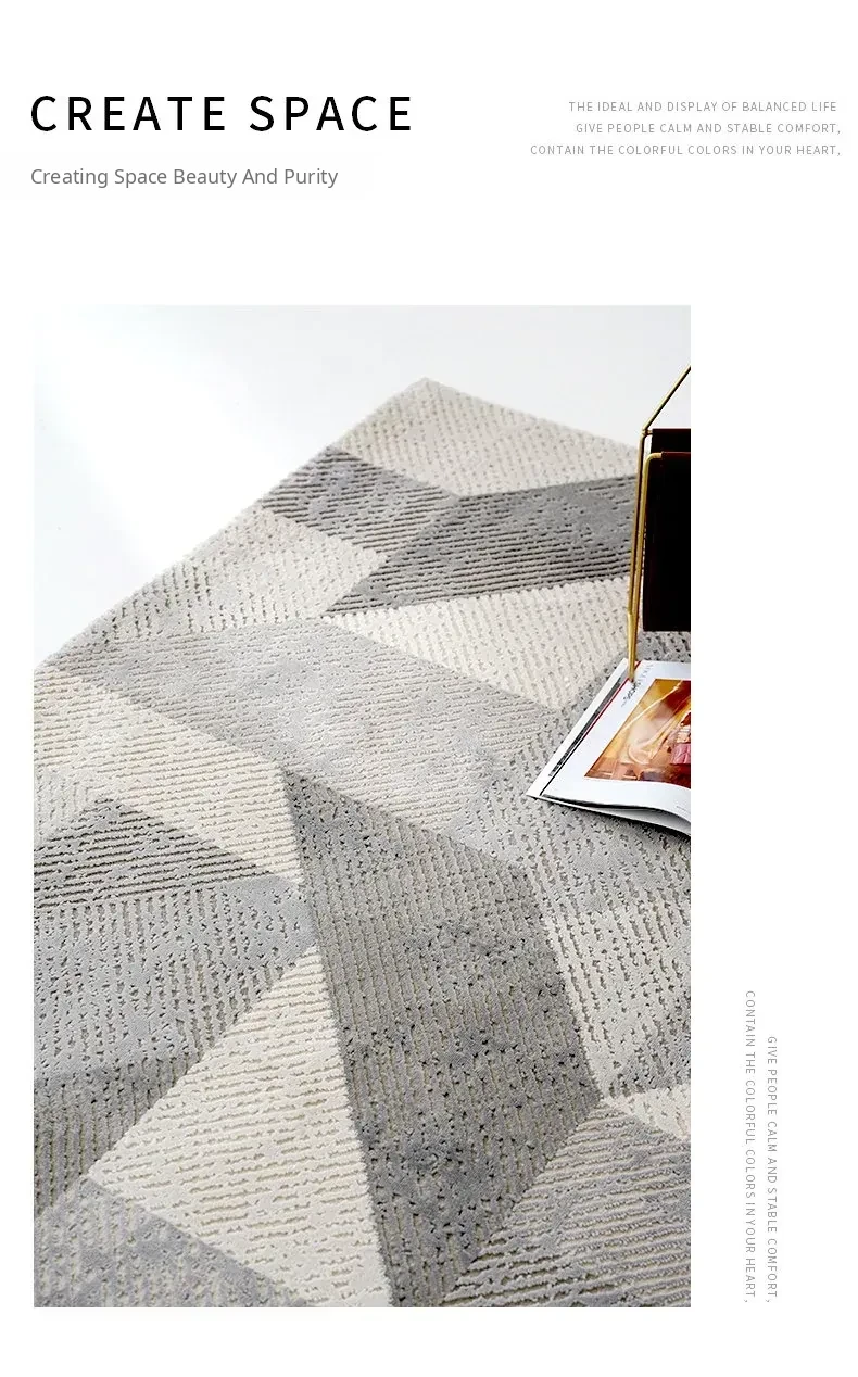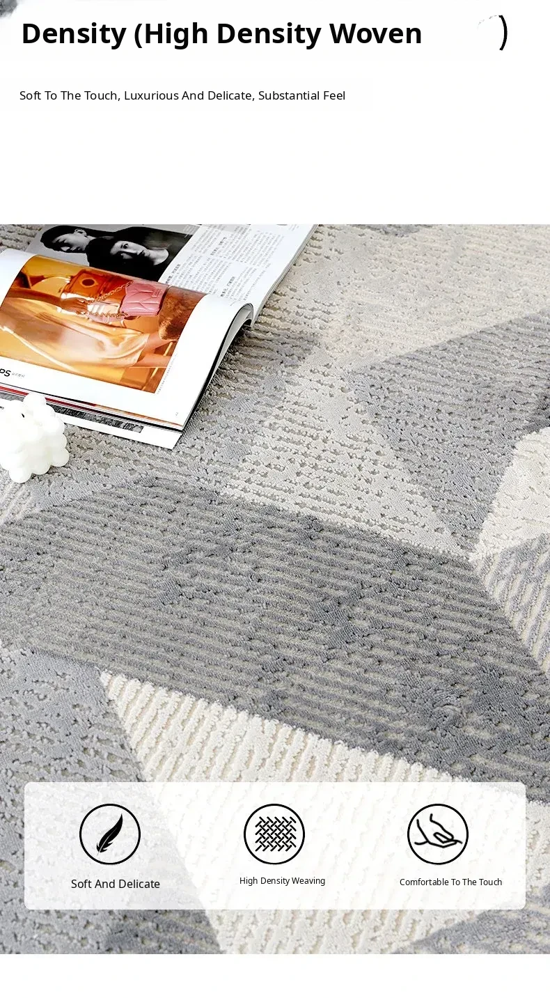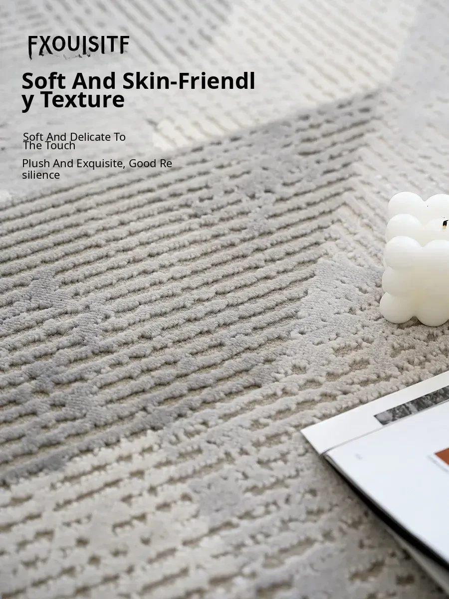 Elegant Gray Living Room Carpet - Modern Luxury Coffee Table Rug, Nordic Minimalist Bedroom Sofa Mat, Bedside Area Rug for Stylish Interiors