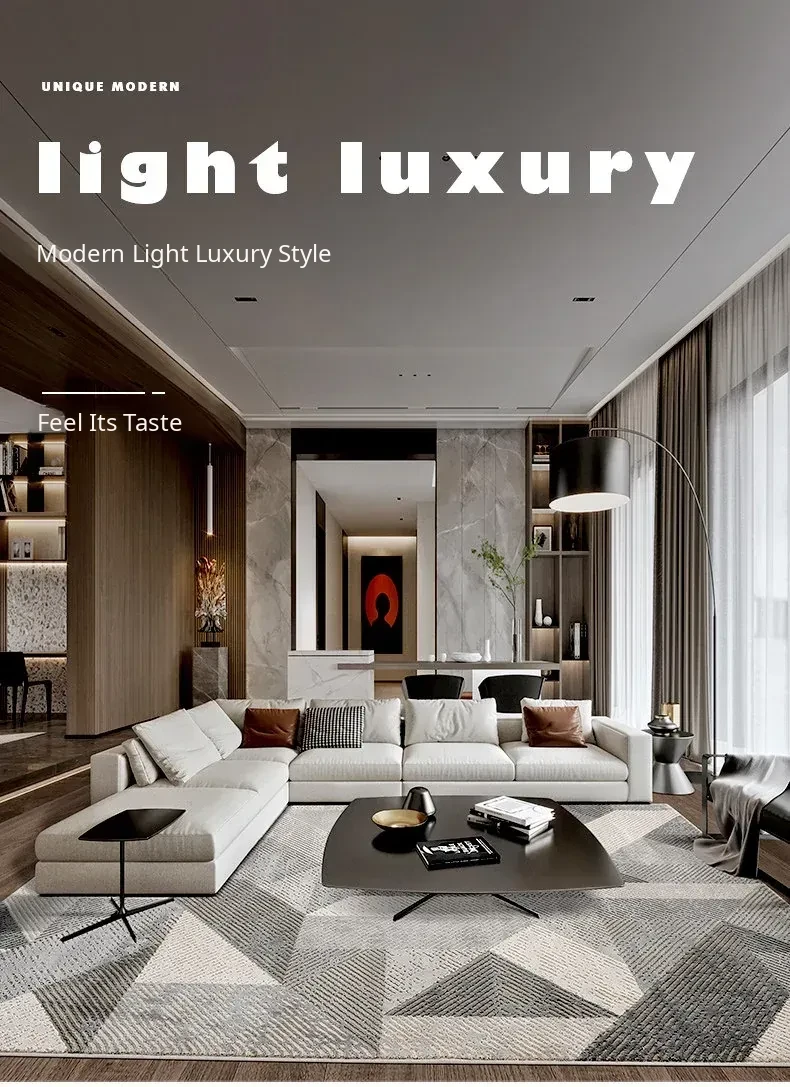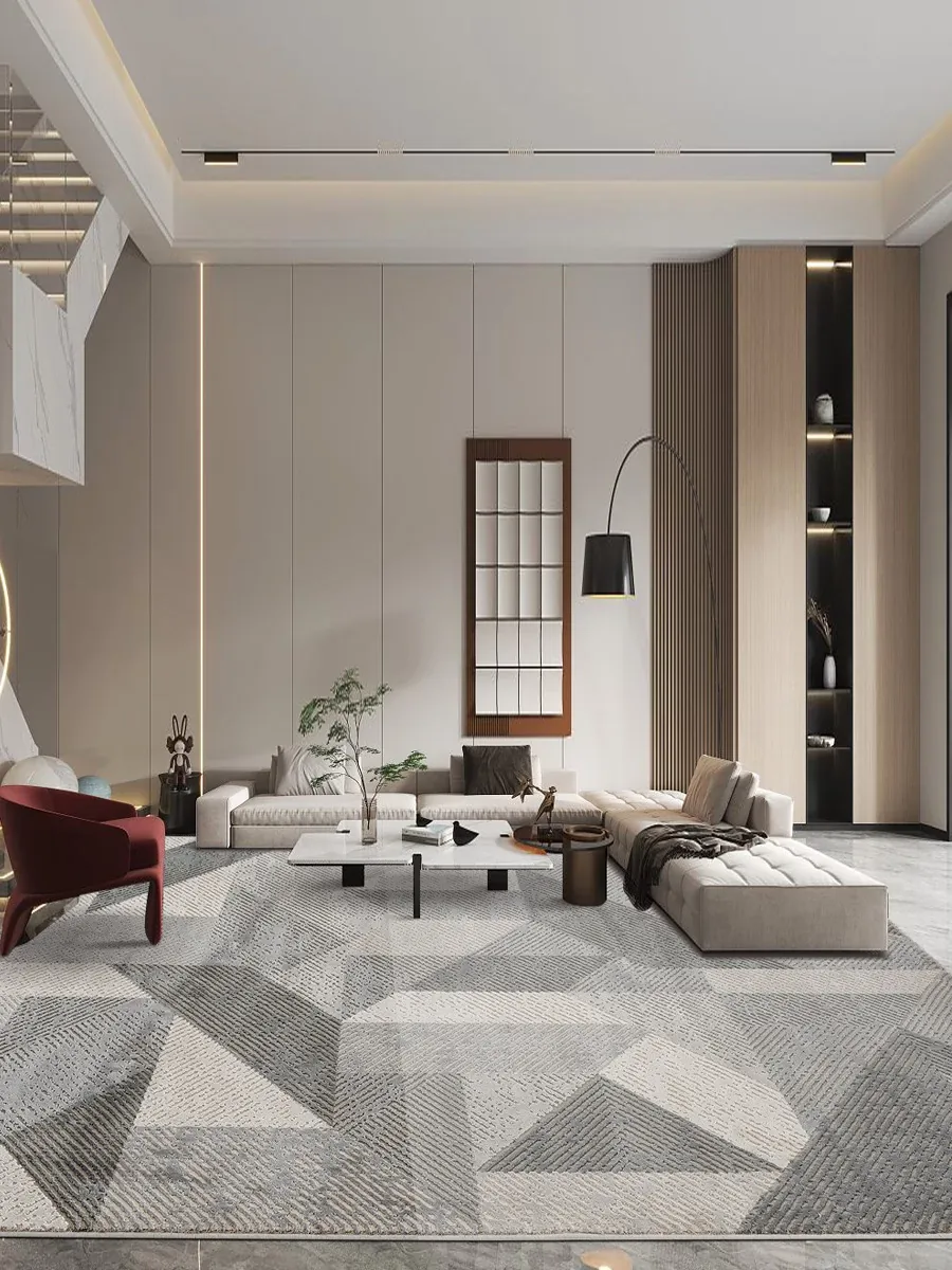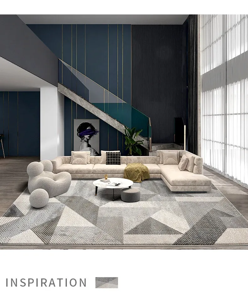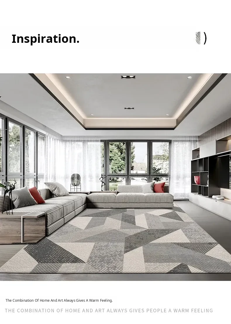 Elegant Gray Living Room Carpet - Modern Luxury Coffee Table Rug, Nordic Minimalist Bedroom Sofa Mat, Bedside Area Rug for Stylish Interiors