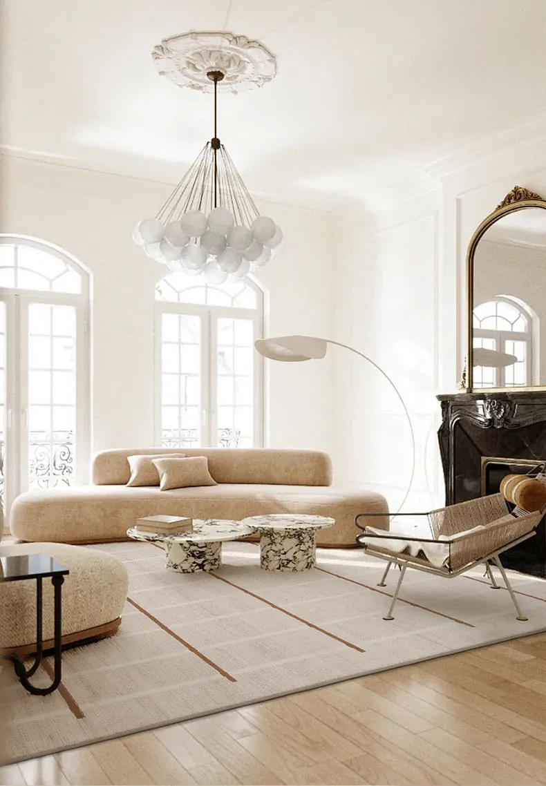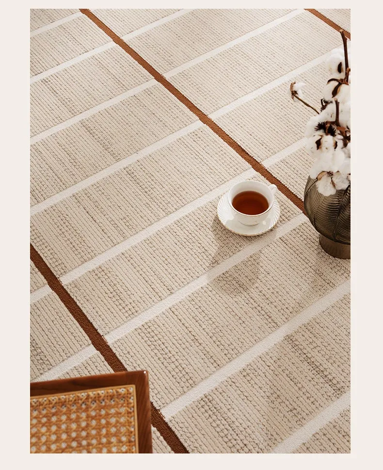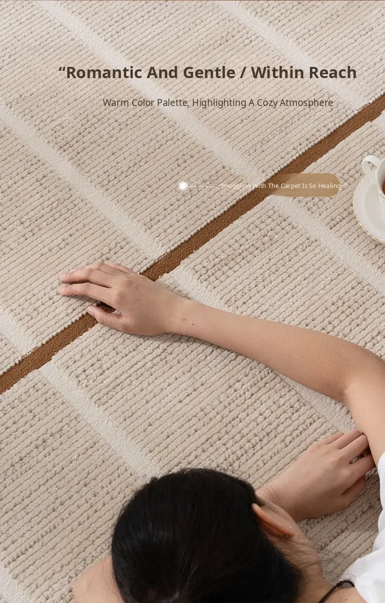 Light French Style Living Room Carpet - Rustic Wood Coffee Table Mat for Modern Minimalist Aesthetic - Chic Italian Minimalist Sofa Rug for a Touch of Luxury