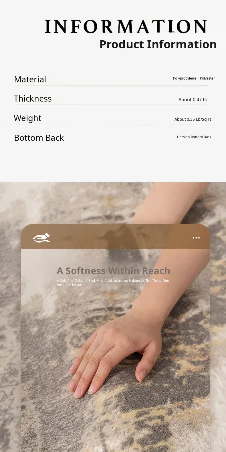 Modern Minimalist Italian Luxury Living Room Carpet - Sophisticated Sofa and Coffee Table Mat, Wabi-Sabi Style Area Rug for Bedroom or Bedside
