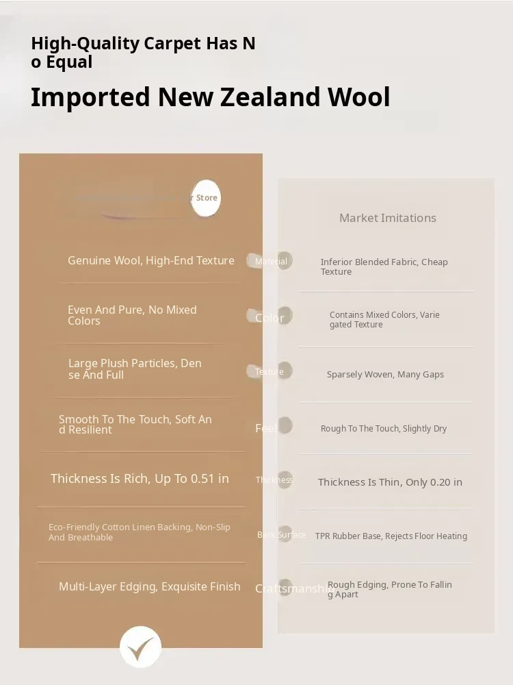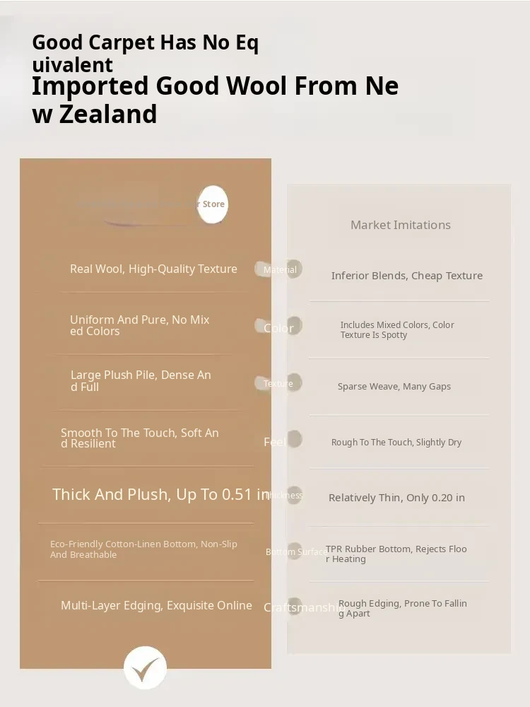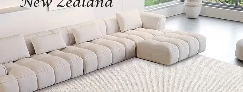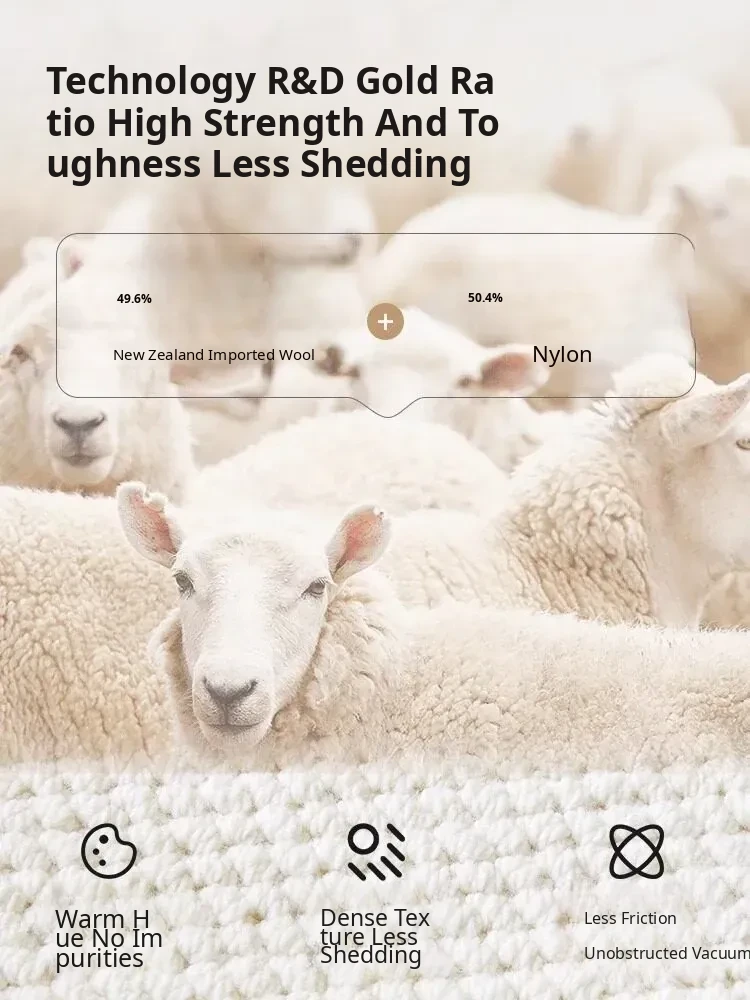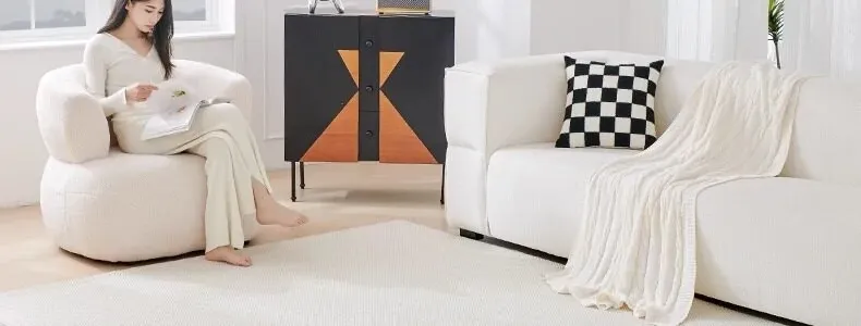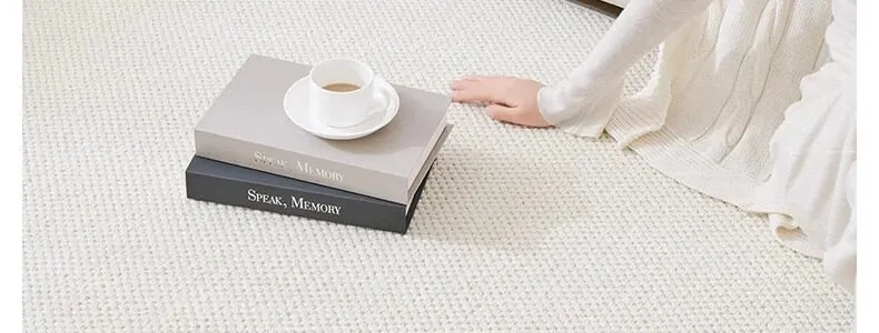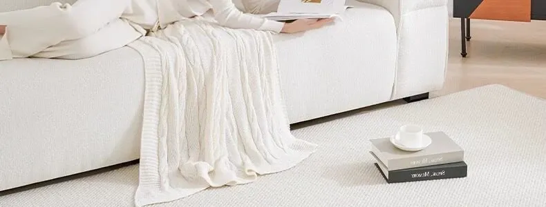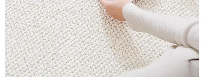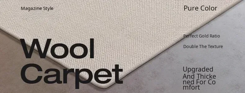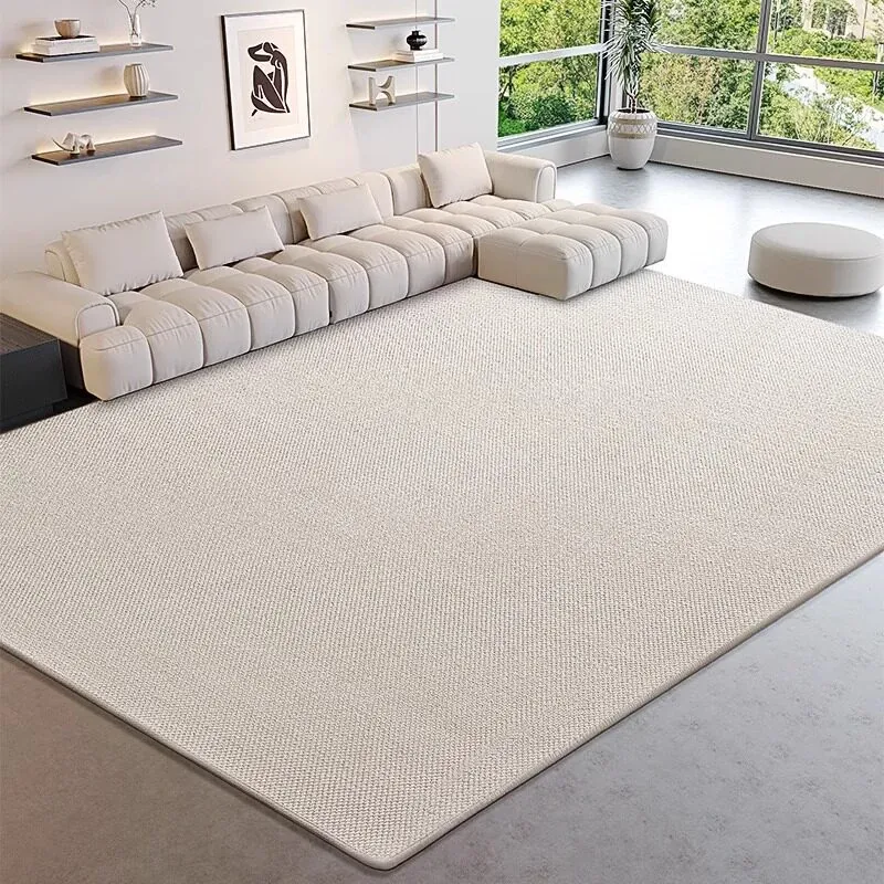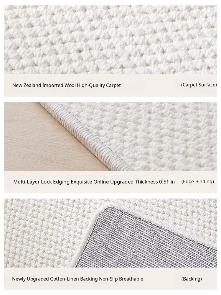 New Zealand Wool Living Room Carpet - Luxurious Creamy Modern Thick Plain Cashmere Area Rug for Bedroom and Coffee Table
