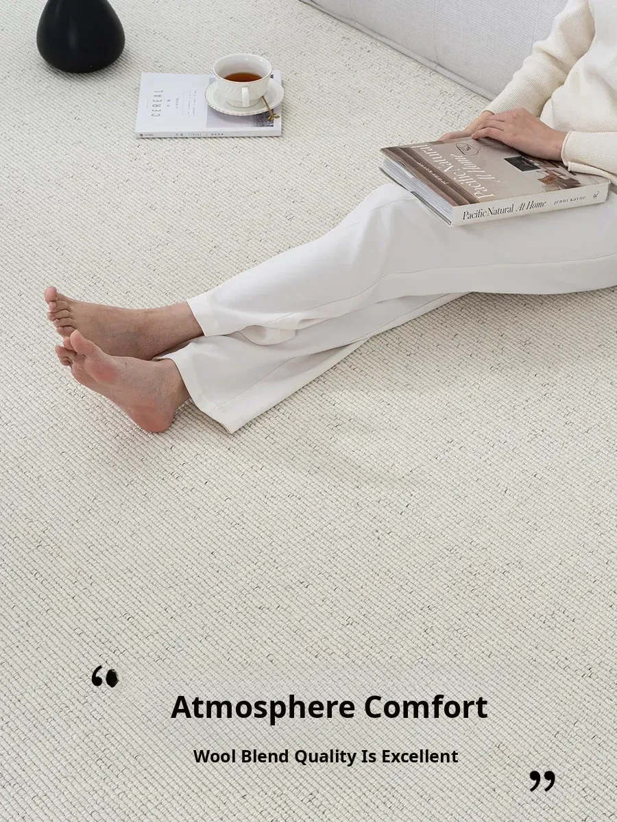 Elegant Light Luxury Pure Color Wool Blend Carpet for Living Room - Vintage Cream Style Minimalist Rug Perfect for Bedroom, Sofa, and Coffee Table