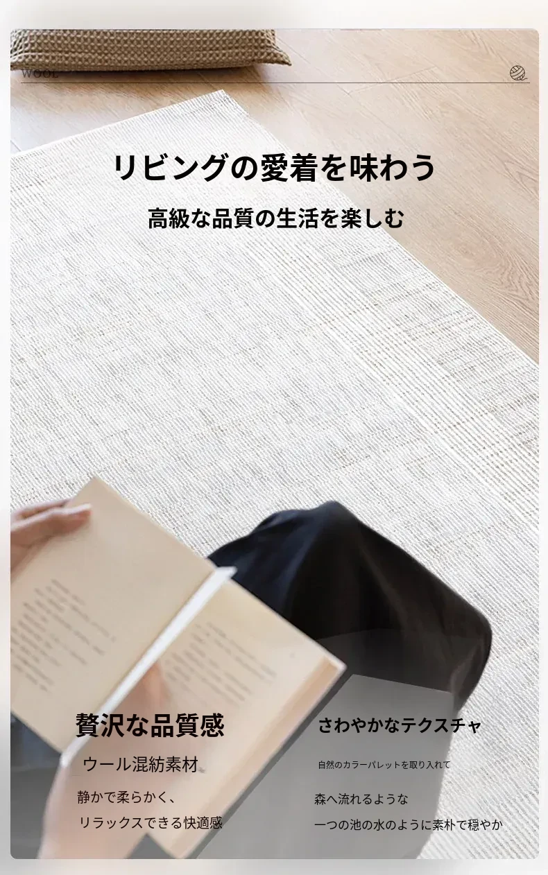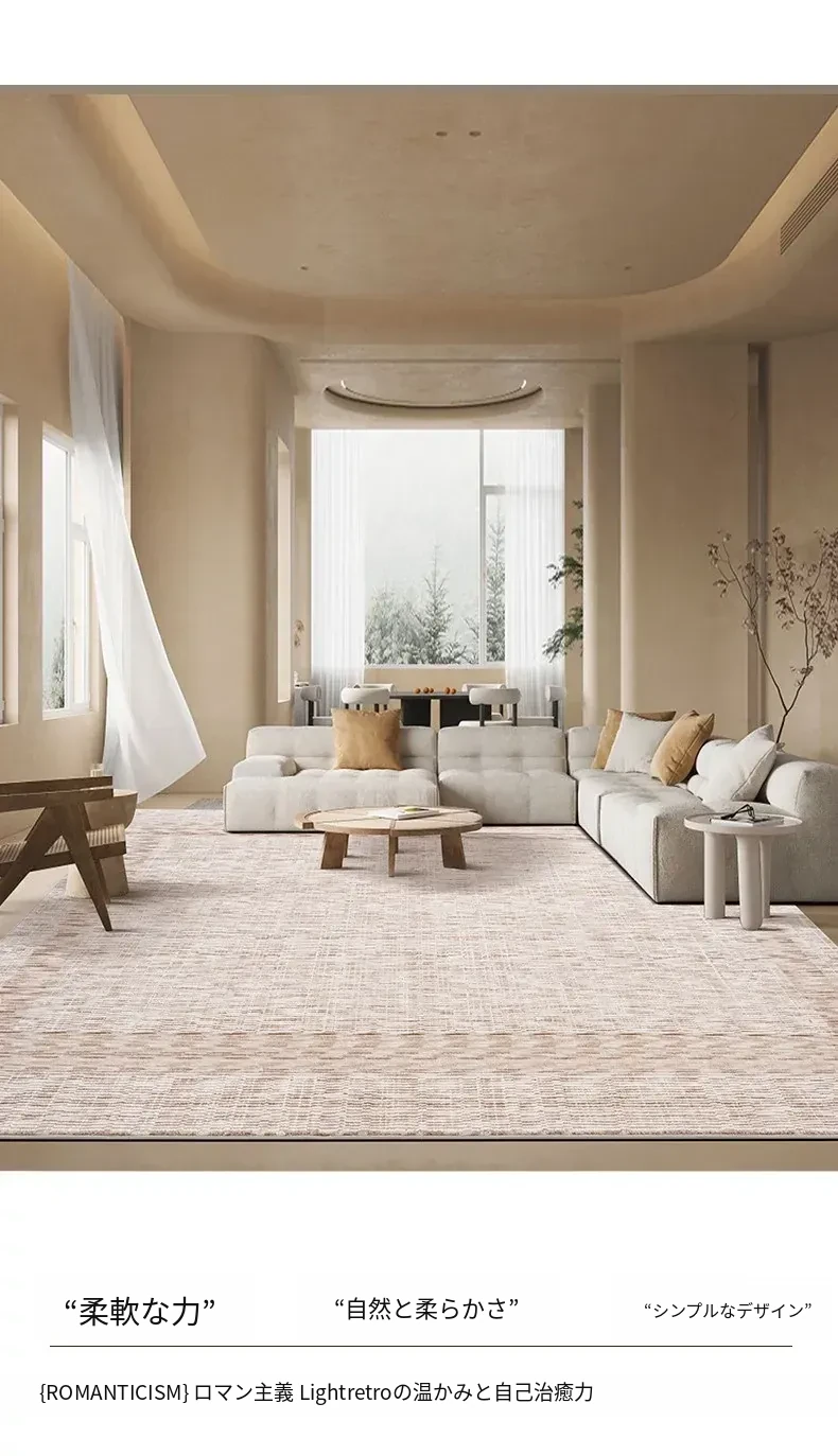シンプルでスタイリッシュなリビング用ラグ - モダンアメリカンデザインのコーヒーテーブルラグ。ベッドサイドやイタリアンラグジュアリーのソファ用にも最適。高級感溢れる空間を演出します。