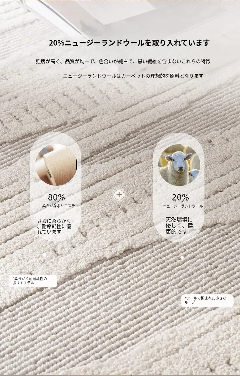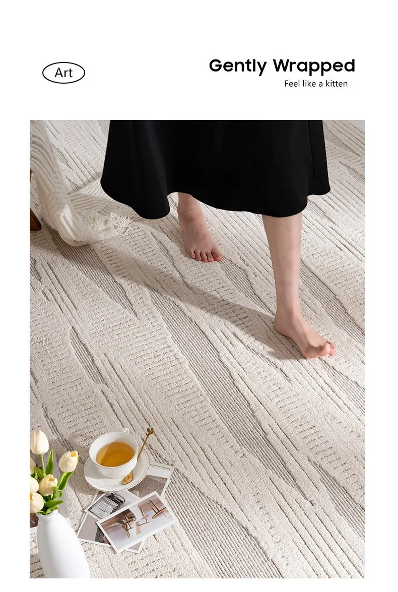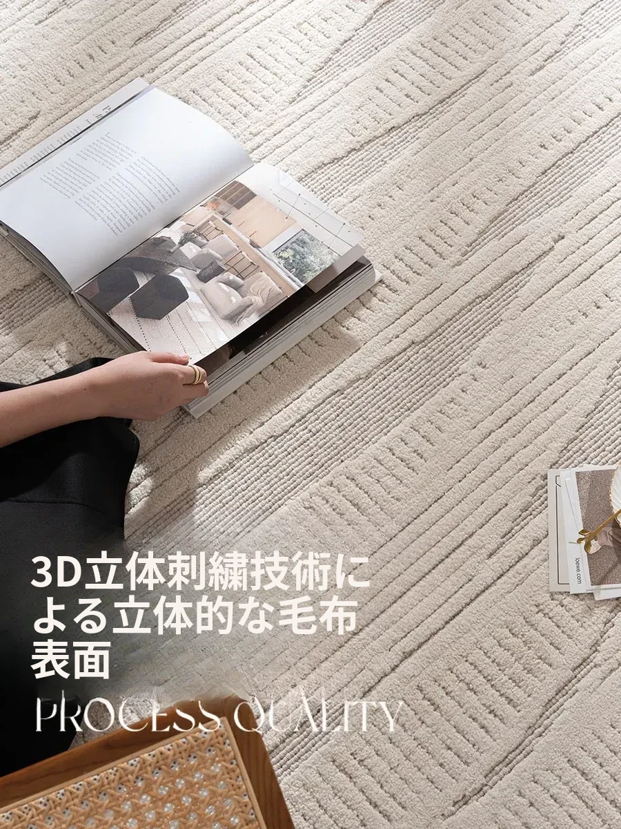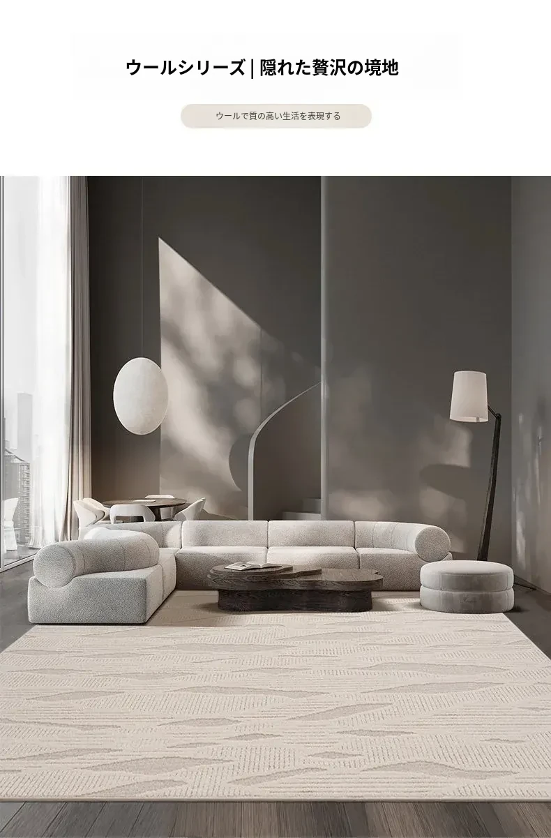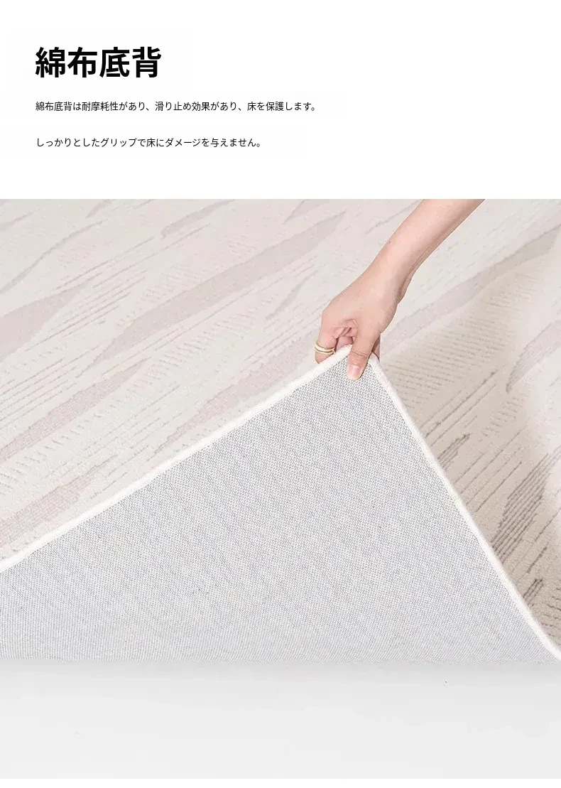 モダンでシンプルなリビング用カーペット - ベッドサイドやソファの足元にぴったりの新作ティーテーブル用マット。軽やかなラグジュアリー感のクリーム風デザインで、あなたの空間を一層引き立てます!