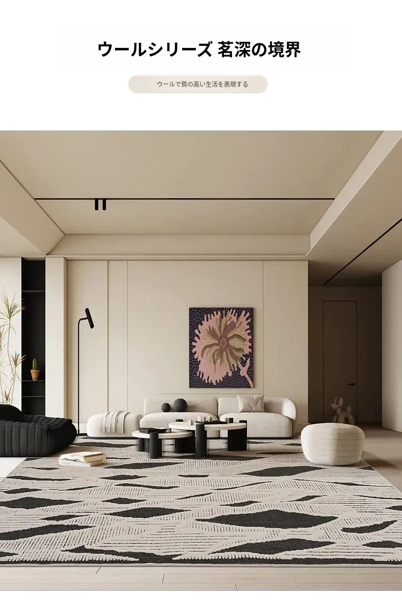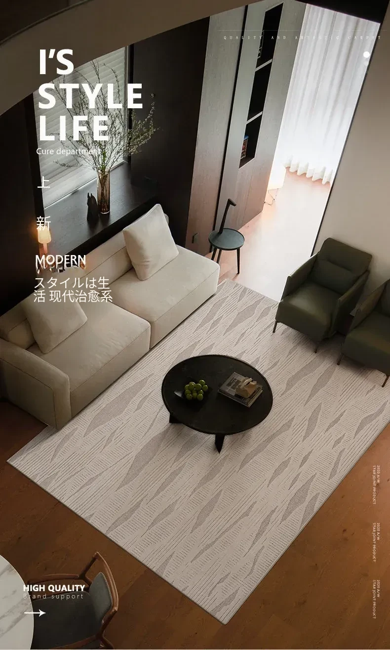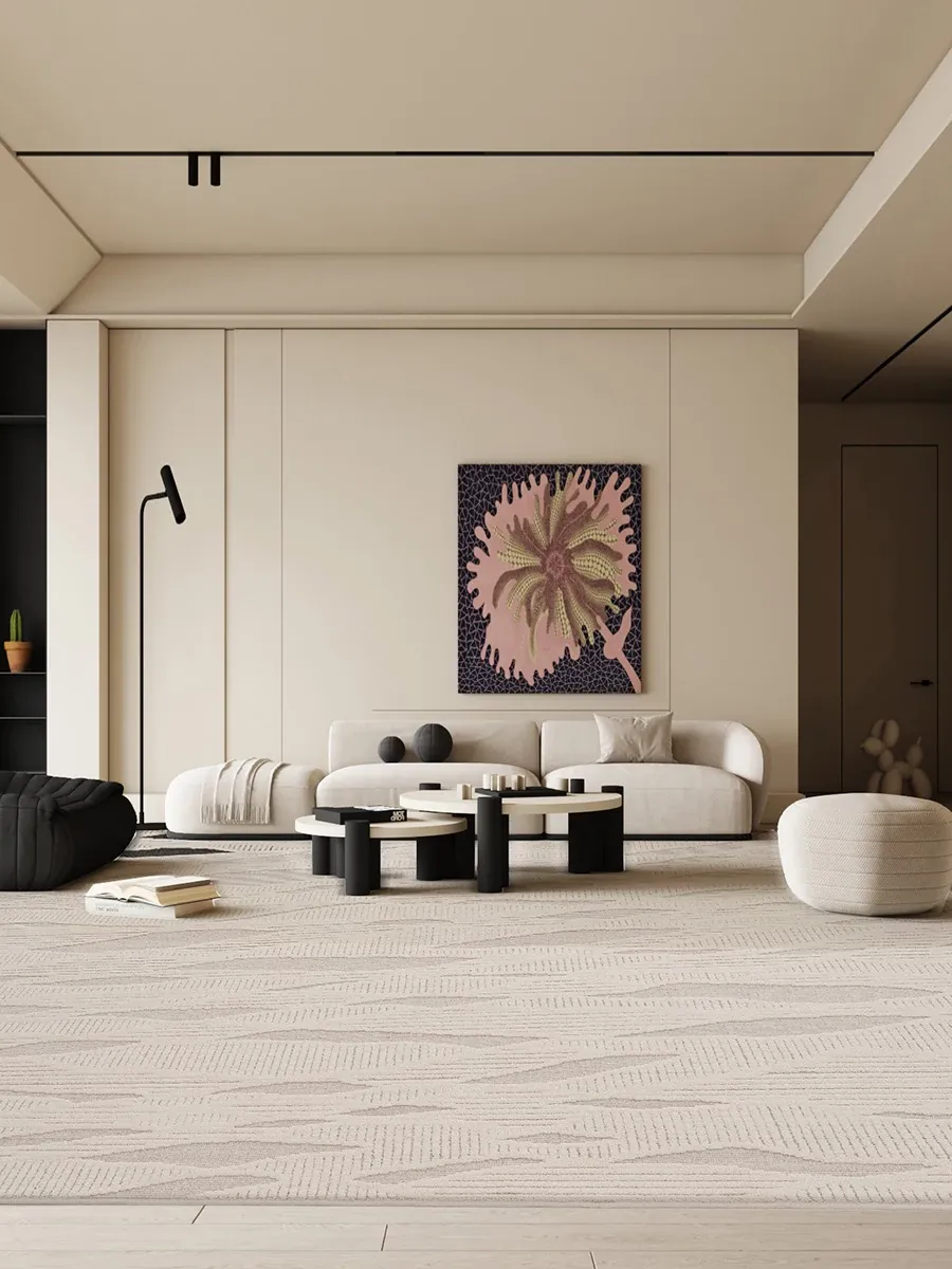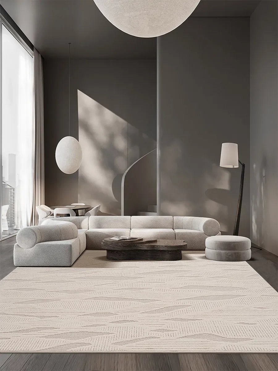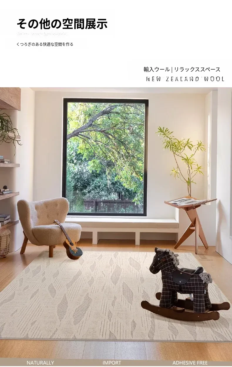 モダンでシンプルなリビング用カーペット - ベッドサイドやソファの足元にぴったりの新作ティーテーブル用マット。軽やかなラグジュアリー感のクリーム風デザインで、あなたの空間を一層引き立てます!