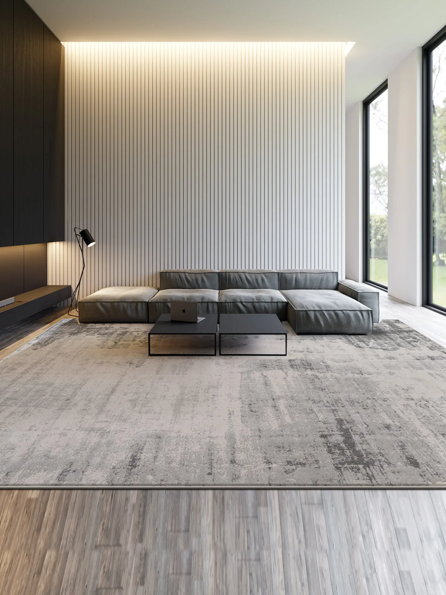 高級グレーのリビングルームラグ|モダンでラグジュアリーなコーヒーテーブルマット|北欧ミニマリストデザインのベッドサイドマット|ソファや部屋にぴったりのスタイリッシュなインテリアアイテム!
