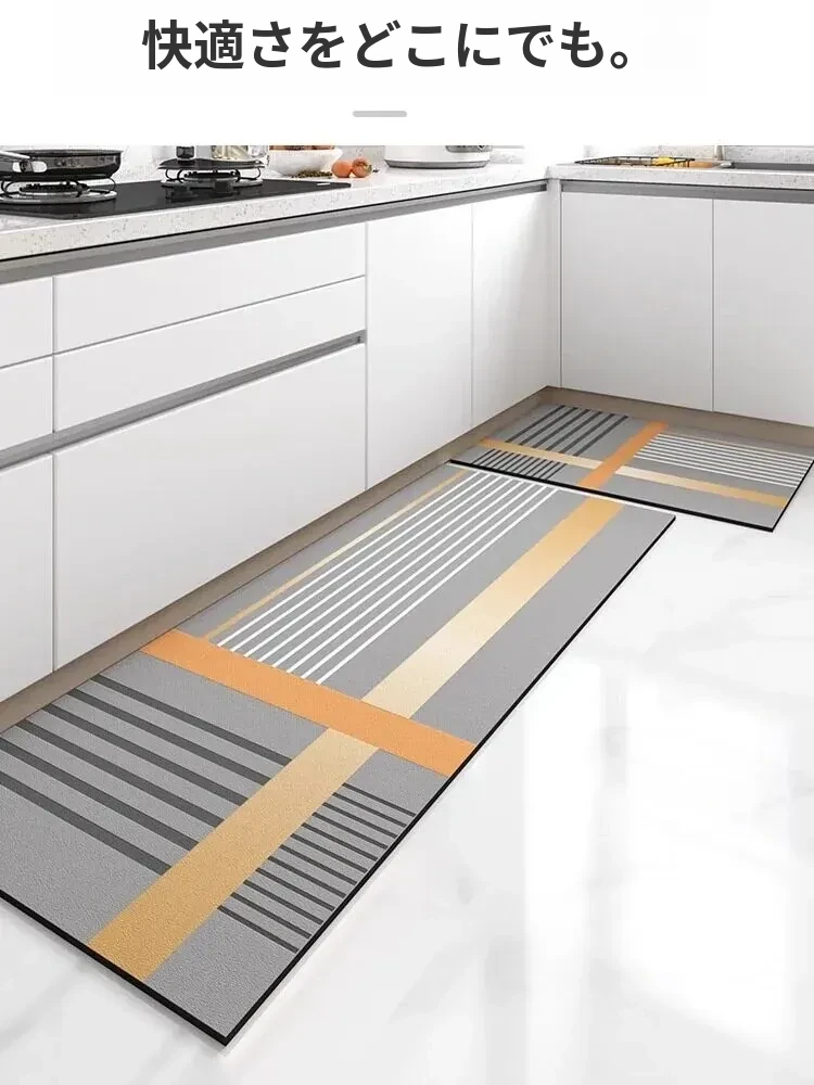 イタリアンキッチン専用シリカゲル吸水マット 防水・滑り止め・油汚れ防止 お手入れ簡単な洗えるキッチンマット 足元をスタイリッシュに保ちます!