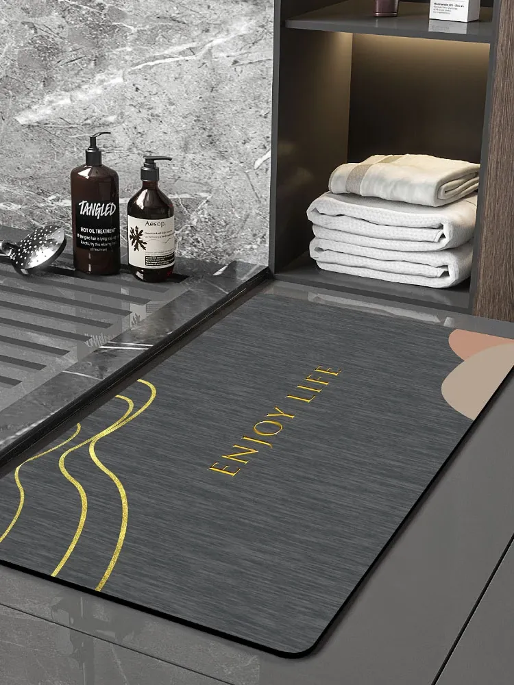 イタリア製バスルームマット・シリカゲルソフトマット!高級感あふれる防滑デザインで、トイレの入り口をスタイリッシュに演出。優れた吸水性と速乾性で、衛生的な空間を実現します。快適な足元をお楽しみください!