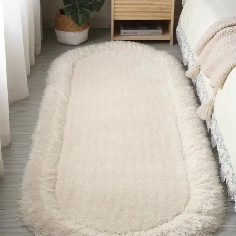 イタリア製厚手オーバル型ファインシルクエラスティックベッドサイドマット - リビング・寝室にぴったり!お部屋をおしゃれに彩る高級感あふれるカーペット。
