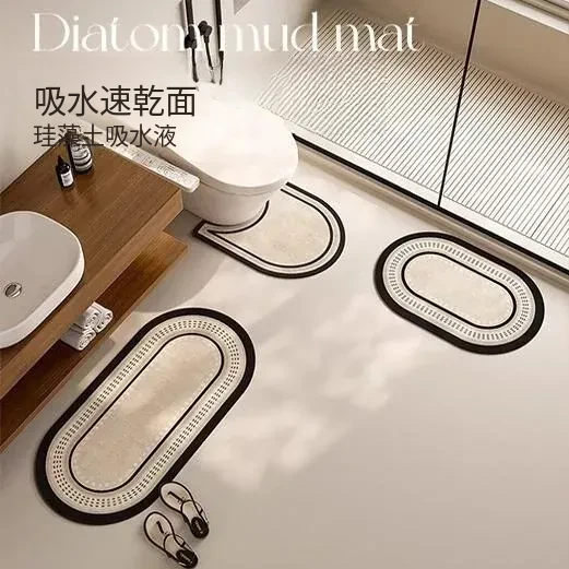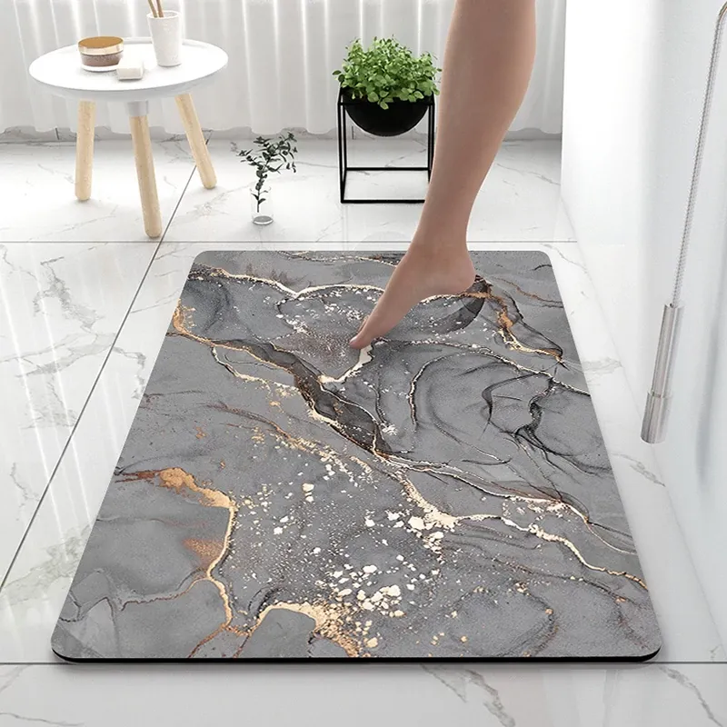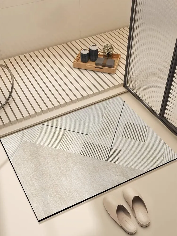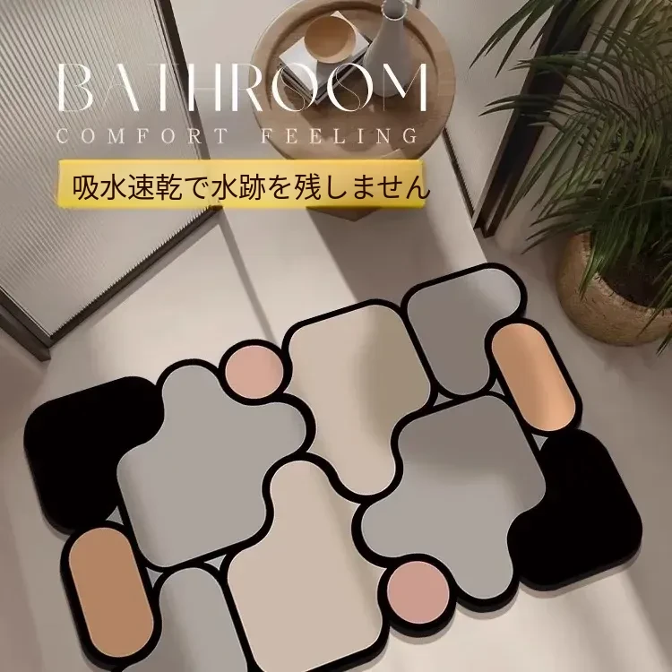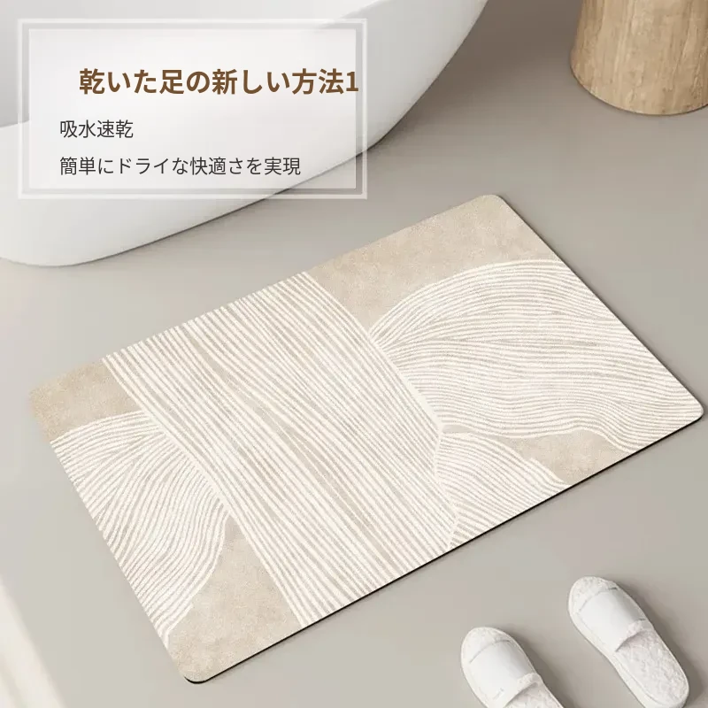 イタリア製バスルームマット - シリカゲル吸水速乾マット!滑り止め機能付き、トイレや洗面所の安全対策に最適!おしゃれで実用的なデザインで、毎日の生活をもっと快適に。