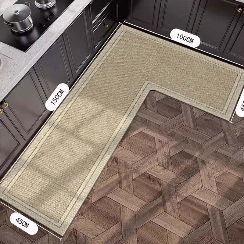 イタリアンキッチン用L型シリカゲルマット|吸水・防油・滑り止め・汚れに強い|カット可能なコーナーラグで、使い勝手抜群!