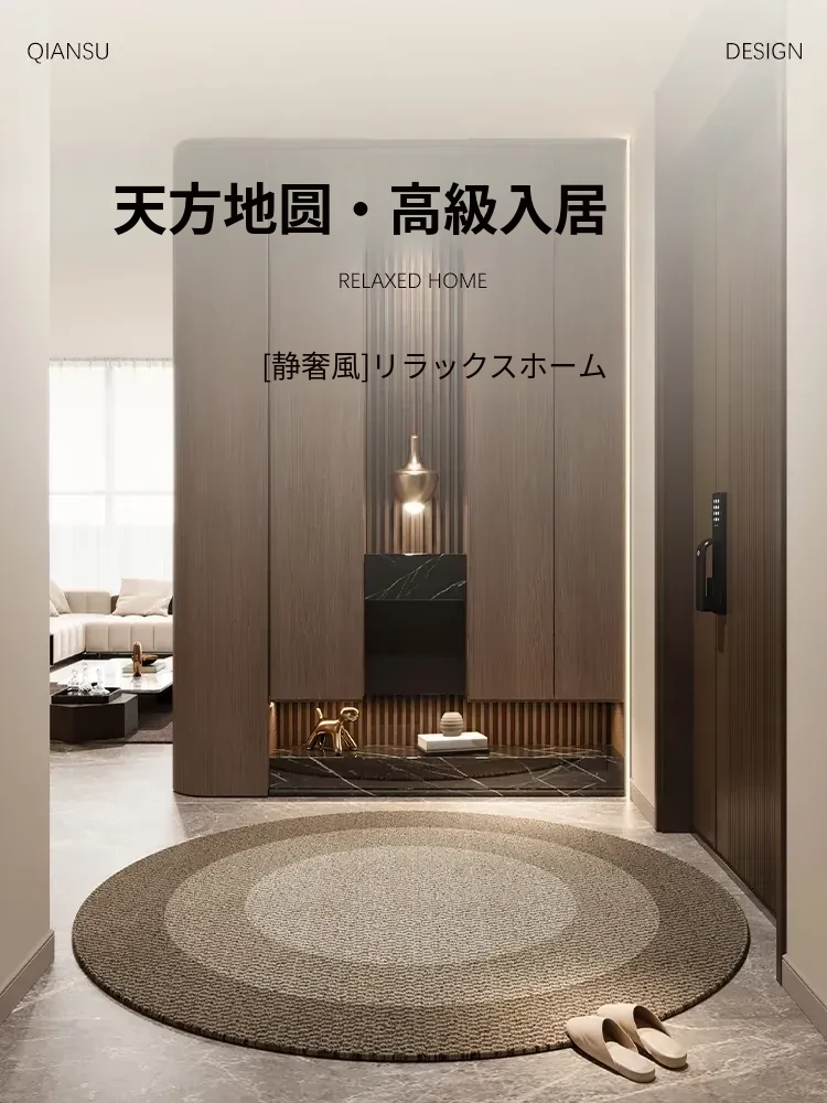 イタリア製円形玄関マット - おしゃれで高級感のあるデザイン、滑り止め機能付き!リビングや玄関にぴったりな新しい家庭用マット。お客様を迎える特別な一枚で、毎日の生活を彩ります!