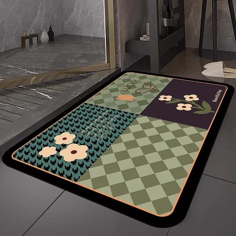 イタリア製バスルームマット - シリカゲル吸水速乾マット!滑り止め機能付き、トイレや洗面所の安全対策に最適!おしゃれで実用的なデザインで、毎日の生活をもっと快適に。