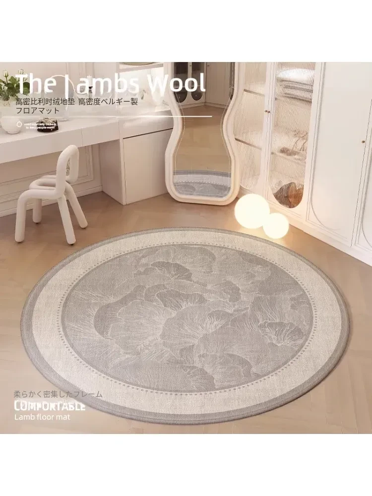 イタリア製ラウンドカーペット ベッドルーム用ドレッサーとメイクアップチェアにぴったり! フランス風の軽やかなラグジュアリー感を演出する高級マット。リビングルームにも最適なデザインで、心地よい空間を作り出します。