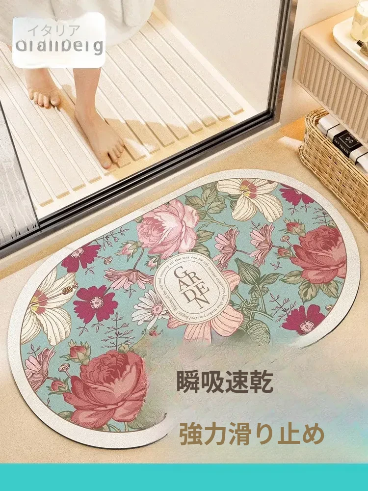 イタリア製バスルームマット - シリカゲル吸水速乾マット!滑り止め機能付き、トイレや洗面所の安全対策に最適!おしゃれで実用的なデザインで、毎日の生活をもっと快適に。