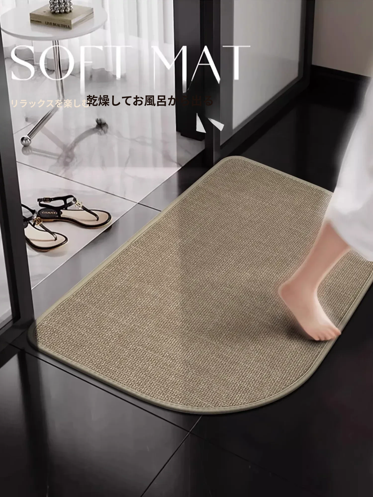イタリア輸入の柔らかい珪藻土バスルームマット - 滑り止め機能付き、トイレの入り口に最適!吸水速乾で清潔をキープ、オシャレなデザインでおしゃれな空間を演出します。