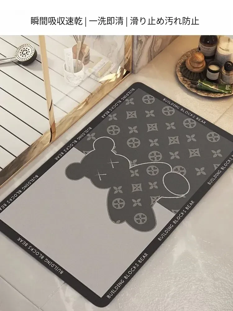 イタリア製吸水・防滑バスルームマット|シリカゲル素材で速乾|玄関やトイレに最適な柔らかいマット!快適な生活空間を演出します。