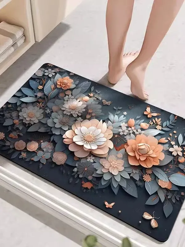 イタリア製新中式シリカゲル吸水防滑バスマット - 玄関やトイレに最適!速乾性で快適な足元を実現。おしゃれで実用的なデザインで、毎日の生活をより便利に。
